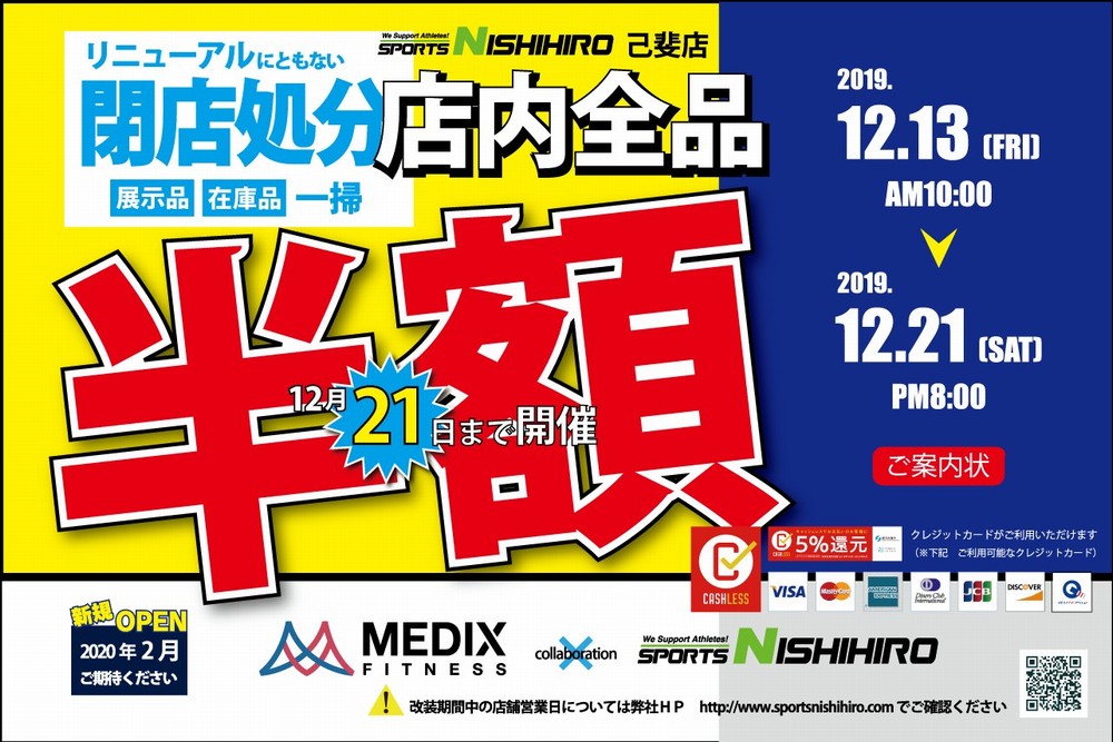 ¥¹¥Ý¡¼¥Ä¤Î¥Ë¥·¥Ò¥í¸ÊÈåŹ¤Ï12·î22Æü¡ÊÆü¡Ë¤è¤êŹÆâ¥ê¥Ë¥å¡¼¥¢¥ë¤Î¤¿¤á°ì»þµÙ¶È¤¤¤¿¤·¤Þ¤¹