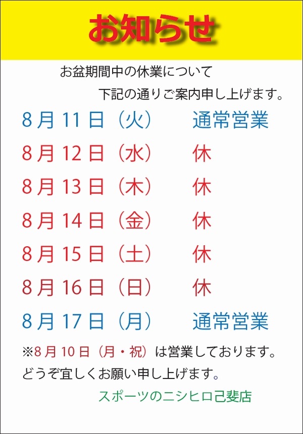 ¥Ë¥·¥Ò¥í¸ÊÈåŹ¡¡£¸·îÅÙ¤ÎŹµÙÆü¡¦Ëߵ٤ˤĤ¤¤Æ¡Ú¤´°ÆÆâ¡Û